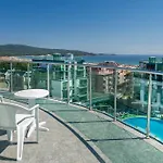 Det 4-stjärniga Hotel Primorsko Del Sol har soldäck, solterrass och utomhusbassäng. Det är beläget ungefär 5 minuter till fots från Akva Planet Primorsko. Det finns Wi Fi i allmänna utrymmen och en parkering på plats.
